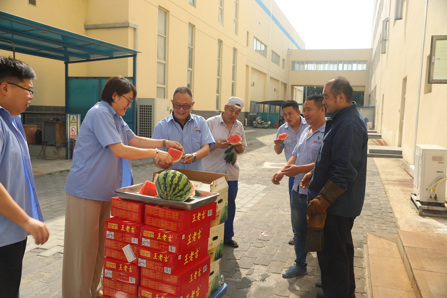 ????絲絲清涼沁人心,句句關懷鼓干勁。此次“送清涼”活動是國藥工業工會貫徹落實“以人為本”理念、服務員工、維護員工健康權益的具體行動,不僅為高溫作業的一線員工送去了清涼和健康保障,更極大地激發了員工的工作熱情和歸屬感,營造了關愛員工、尊重勞動、和諧發展的良好氛圍,為公司安全生產和高質量發展凝聚了強大合力。